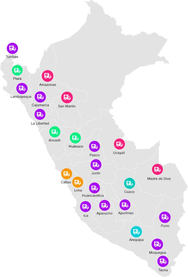 Ubica en el mapa tu departamento y conoce el costo de envío y tiempo de entrega. Los días de entrega son hábiles (sin contar domingo).